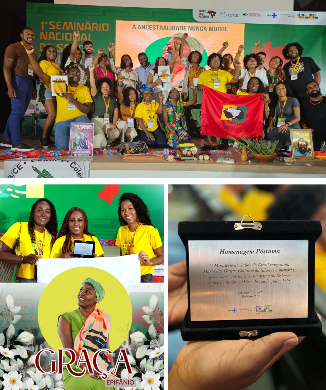 Durante o seminário, foram anunciadas ações significativas, como: Adesão do município de Alcântara ao Plano Juventude Negra Viva, iniciativa do Ministério da Igualdade Racial e posse dos representantes do Grupo de Trabalho de Saúde Quilombola “Graça Epifânio”, instituído pela Portaria nº 5.794/2024. A criação do GT representa um avanço decisivo para consolidar a saúde quilombola como prioridade no Governo Federal.