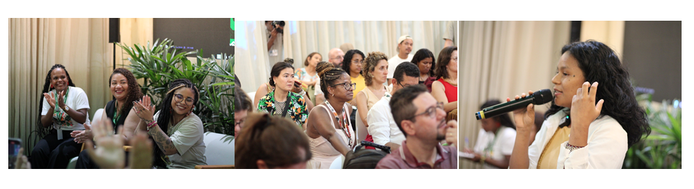 Em um debate marcado por emoção, sabedoria e ancestralidade, as participantes ressaltaram que são as mulheres quilombolas que, há séculos, cuidam da terra, do povo e da biodiversidade, e que as soluções para a crise climática global estão enraizadas nos saberes e modos de vida dos quilombos.