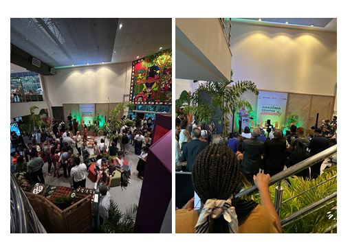 Encerrando o primeiro dia de atividades, a CONAQ também marcou presença na inauguração da Estação Amazônia Sempre, reforçando sua aliança com outros povos e movimentos que constroem soluções coletivas para a crise climática. As lideranças Kátia Penha e Oswaldo Bilbao representaram a força e a sabedoria quilombola e afrodescendente, reafirmando o papel essencial das comunidades na preservação ambiental e na construção da justiça climática global.