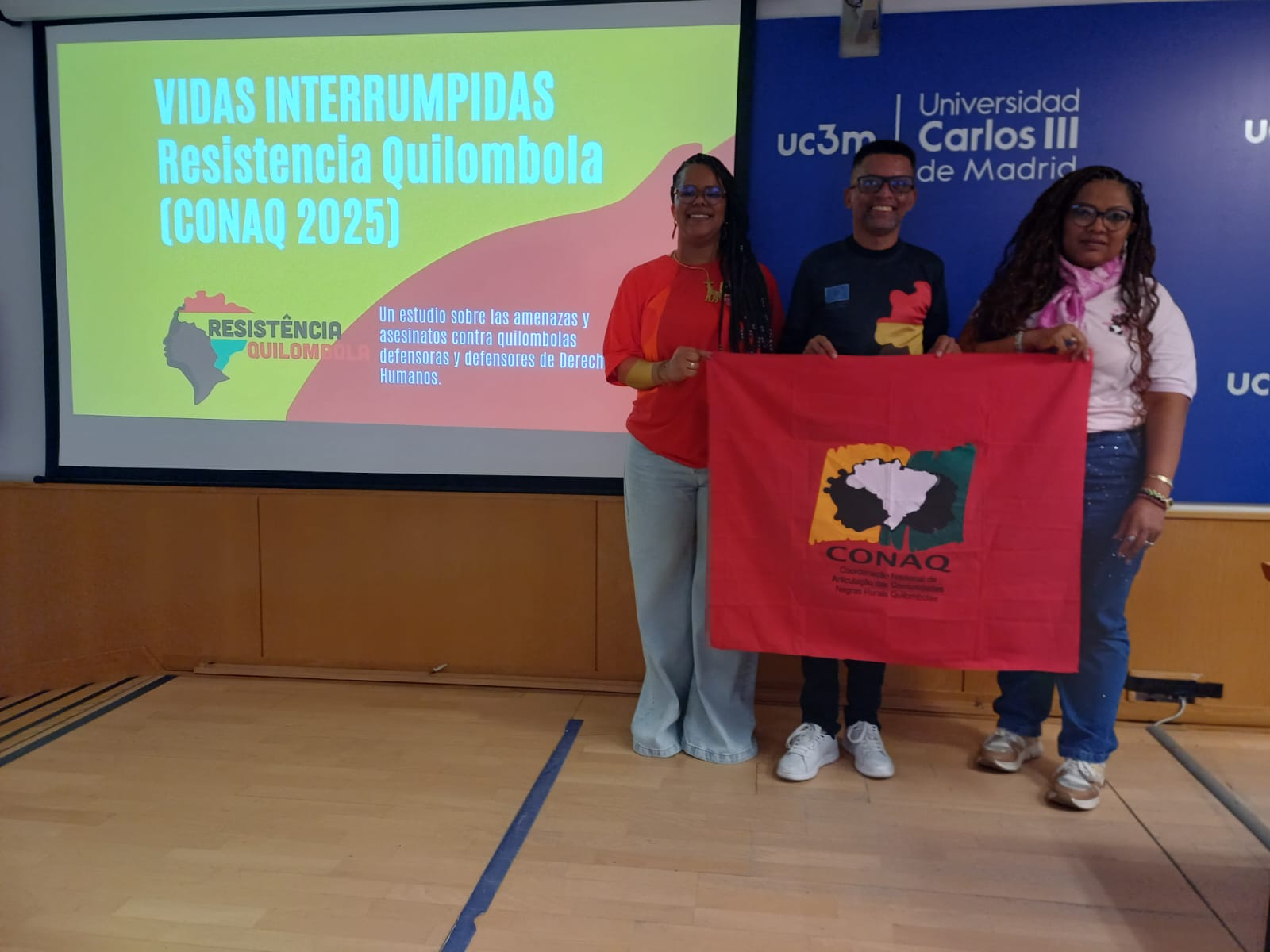 A Coordenação Nacional de Articulação das Comunidades Negras Rurais Quilombolas (CONAQ) participou de uma aula magna na Universidade Carlos III de Madrid, destinada a estudantes do curso de Mestrado em Ação Solidária Internacional e Inclusão Social. A atividade foi organizada pelo professor Diego Batistessa, com articulação conjunta entre a COSPE e a CONAQ.