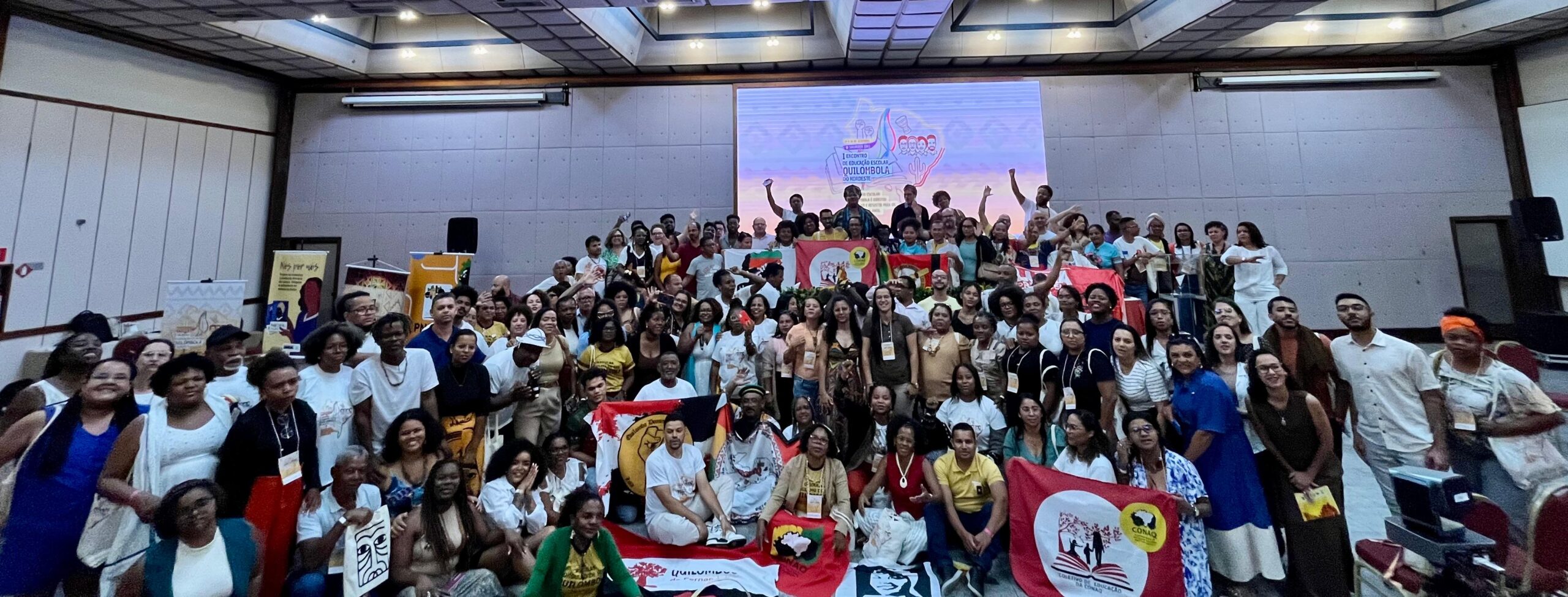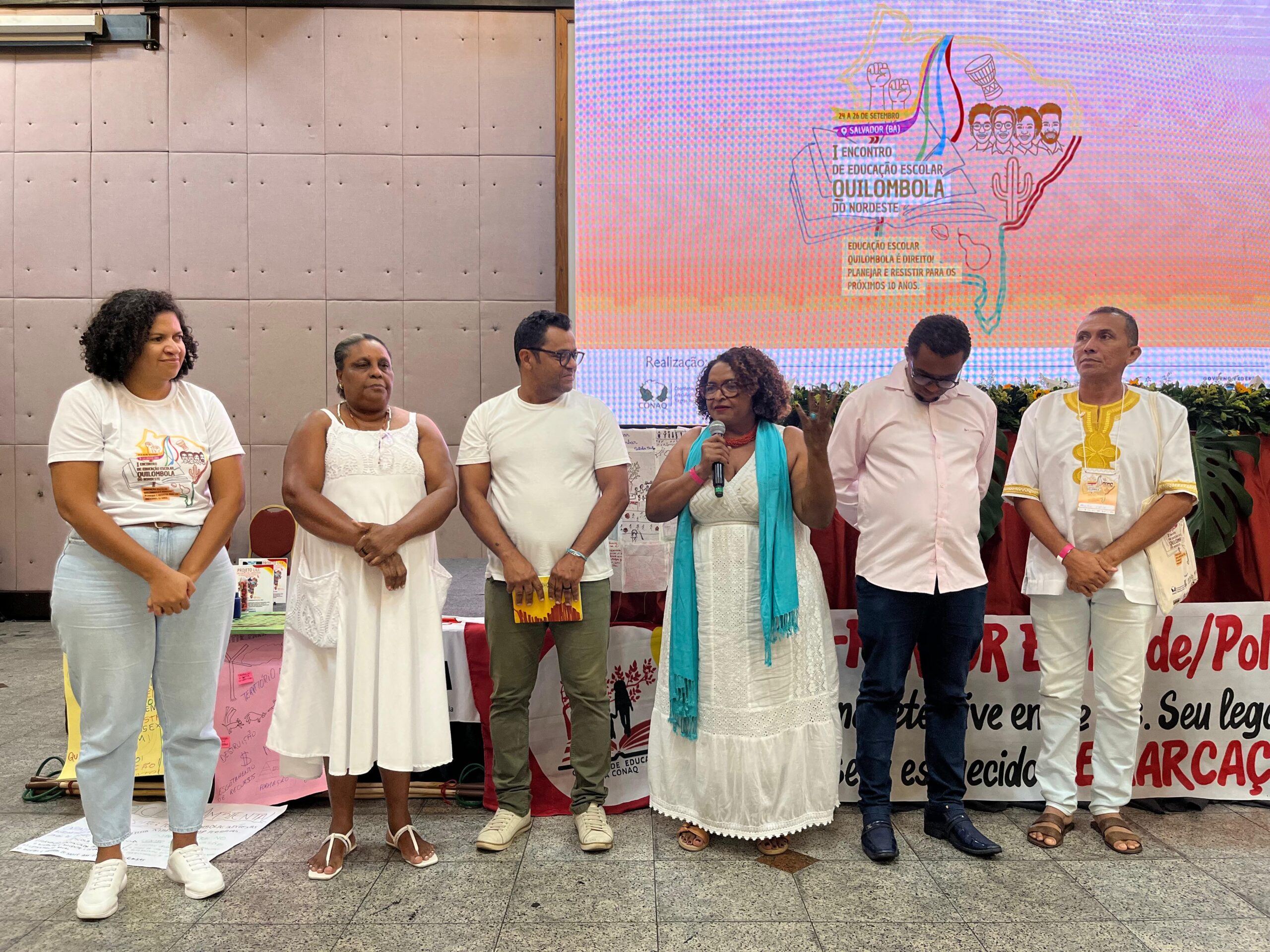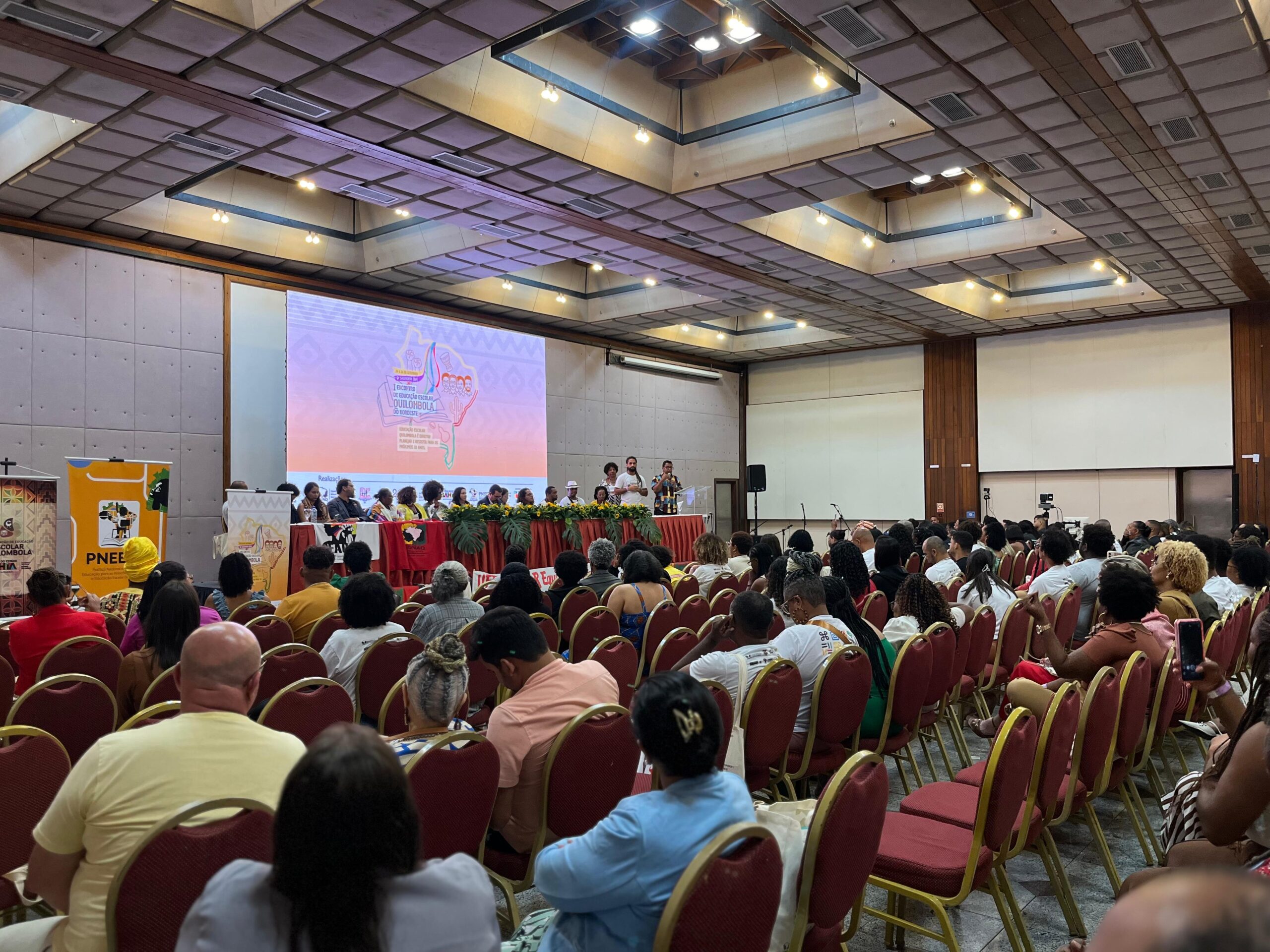 O I Encontro Regional de Educação Escolar Quilombola do Nordeste, realizado em Salvador (BA), representou um marco político na luta por uma educação construída a partir das vozes quilombolas. Realizado entre os dias 24 e 26 de setembro, o evento com o tema “Educação Escolar Quilombola é direito! Planejar e resistir para os próximos 10 anos” reuniu mais de 350 pessoas da Bahia, Alagoas, Ceará, Maranhão, Paraíba, Pernambuco, Piauí, Rio Grande do Norte e Sergipe. O momento foi marcado pela presença e pelo protagonismo de pessoas quilombolas que compartilharam as vivências dos seus territórios e das suas escolas.