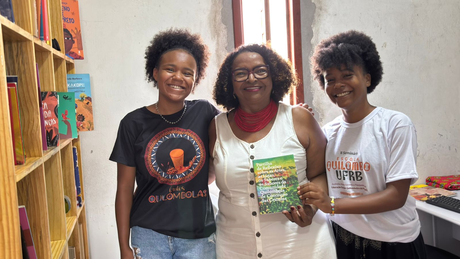 “Foi muito lindo. Fui muito bem recebida pelas mulheres, pela comunidade. Foi incrível! Para mim foi um presente poder ir à comunidade de Ana e de Ester e poder ver o trabalho que duas adolescentes estão fazendo em prol da leitura, que não é só a biblioteca. Elas levam livros para contar histórias aos mais velhos e ouvem as histórias dos mais velhos para contar na escola. É um trabalho muito lindo que elas desenvolvem aqui”, afirmou Givânia.