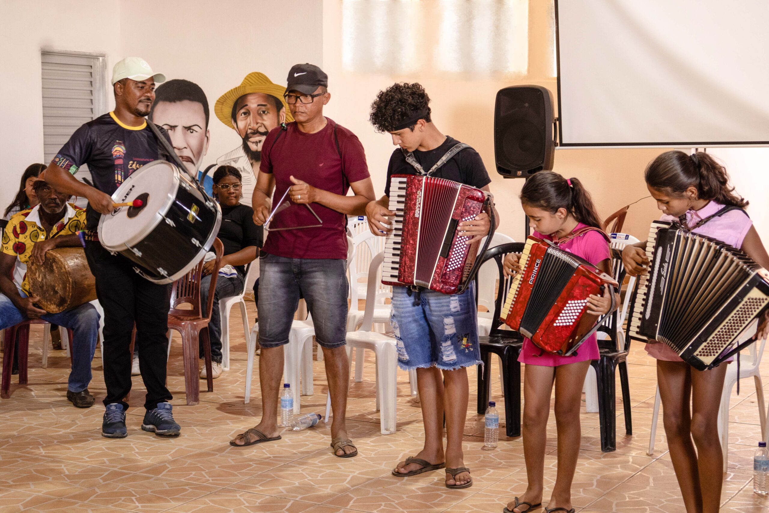 Durante o III Festival de Batuques foi realizada oficina com jovens. O momento formativo tinha como objetivo conectar políticas públicas à realidade quilombola e à juventude quilombola. A visita ao Museu Dona Cumbuca chamou atenção do público – uma vivência guiada acervo que guarda memórias, objetos e histórias da ancestralidade quilombola piauiense.