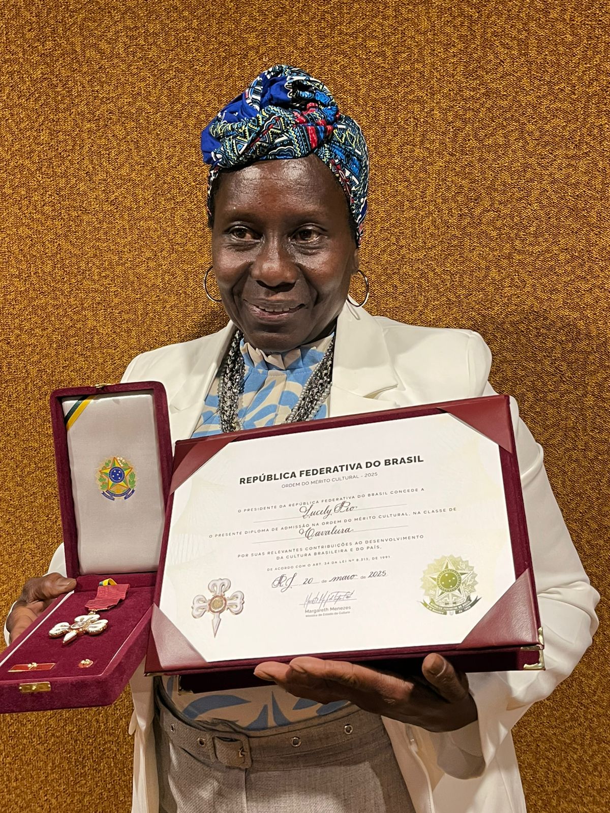 A ativista é referência nacional e internacional por seu trabalho com plantas medicinais. Ela é conhecida por resgatar e transmitir conhecimentos que conectam o corpo, o espírito, o território e a comunidade, criando uma ponte entre a medicina tradicional e a valorização cultural de seu quilombo. Na ocasião também estiveram presentes as ministras Margareth Menezes do Ministério da Cultura e Macaé Evaristo dos Direitos Humanos e da Cidadania.