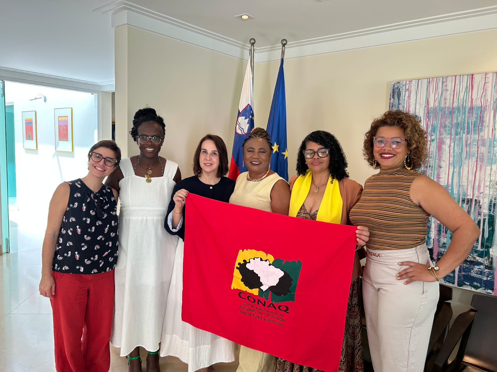 BRASÍLIA (DF) – A Coordenação Nacional de Articulação das Comunidades Negras Rurais Quilombolas (CONAQ), representada por seu Coletivo de Mulheres, cumpriu, nesta quinta-feira (09), uma agenda estratégica de incidência política internacional. As lideranças foram recebidas na capital federal pela Embaixadora da Eslovênia no Brasil, Mateja Kračun, para uma reunião focada em cooperação institucional, preservação ambiental e sustentabilidade dos territórios.