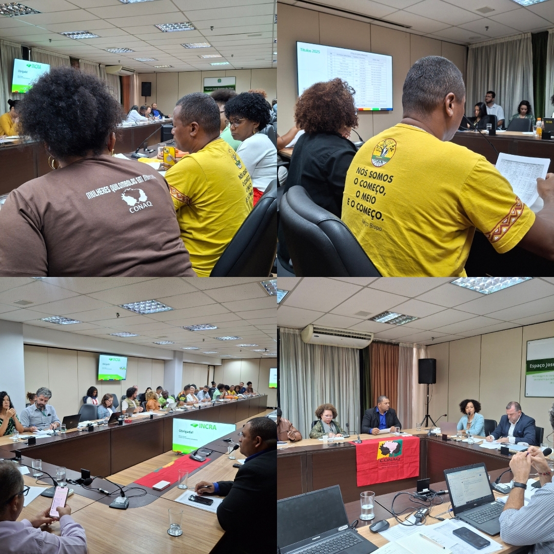 O debate sobre a Regularização Fundiária, conduzido pela diretoria do Instituto Nacional de Colonização e Reforma Agrária (Incra), Diretor-presidente César Fernando Schiavon Aldrighi e a Diretora de Territórios Quilombolas (DQ) Mônica Moraes Borges e pelo Ministério da Igualdade Racial (MIR) Bárbara Oliveira Secretária Executiva adjunta e Francinete Pereira Chefe de Gabinete (SQPT) Secretaria de Políticas para Quilombolas, Povos e Comunidades Tradicionais de Matriz Africana, Povos de Terreiros e Ciganos e Rafaela Oliveira Coordenadora Geral de Políticas para quilombolas. O debate focou nos avanços e, principalmente, nos desafios históricos que persistem. A CONAQ enfatizou que, embora haja um esforço crescente, o ritmo de titulação de Territórios Quilombolas (TQs) é considerado inaceitavelmente lento pelos movimentos sociais, gerando insegurança jurídica e expondo as comunidades a graves conflitos agrários.
